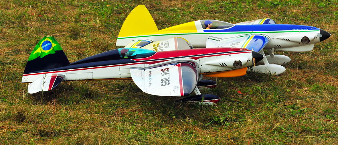 The model aircraft compete for pure speed in the F2A category where the engine is restricted to 2.5cc maximum displacement. The use of tuned exhaust extraction systems allows high engine performance and speeds exceeding 300 kilometers per hour over a 9 lap course of 1 kilometer distance. Timing can be done with sophisticated electronic devices to assure accuracy.